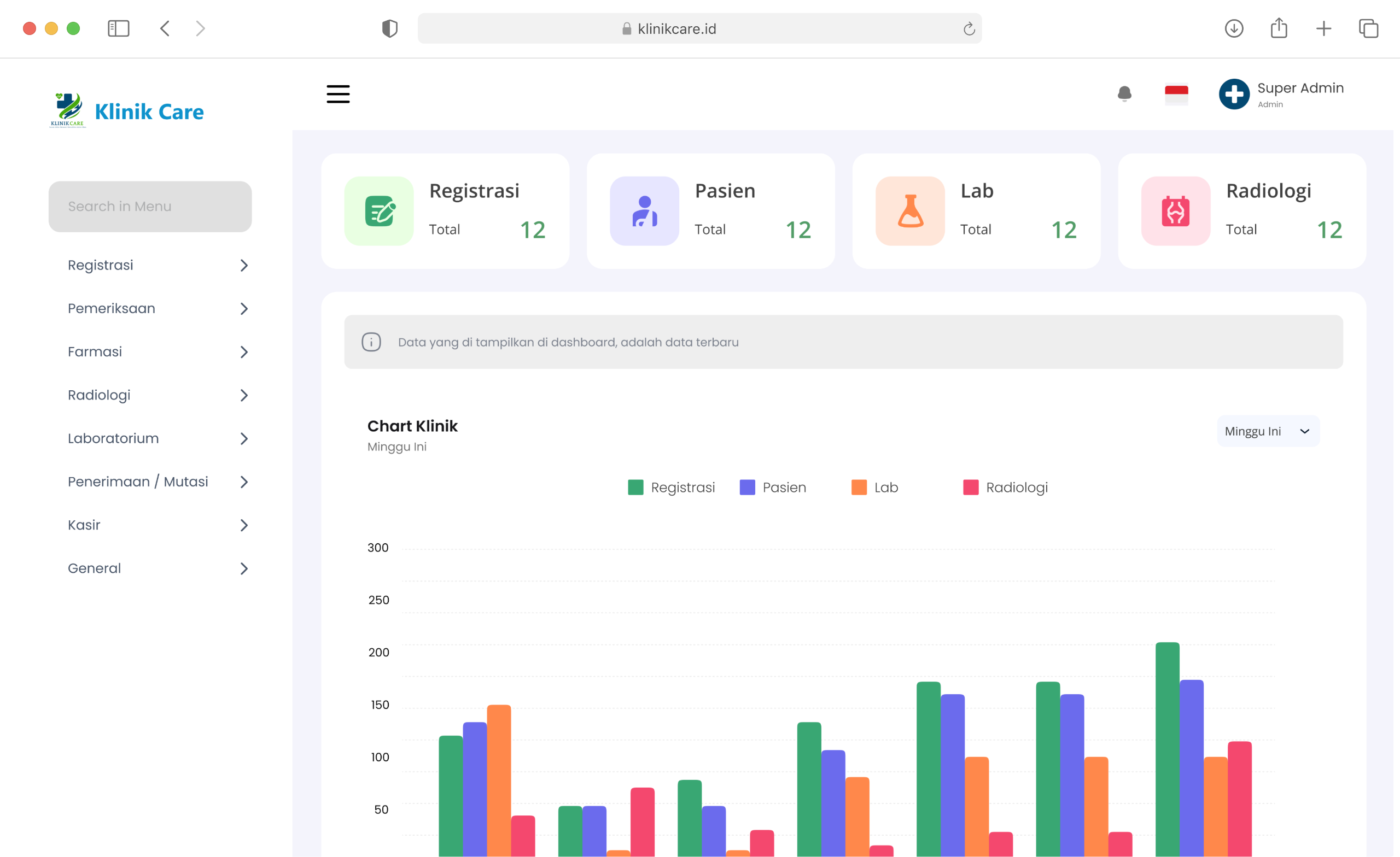 Report aktivitas klinik, memungkinkan owner dapat memantau report.Pemeriksaan & Laboratorium